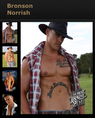 You’re gonna love this.  Australia’s biggest manufacturer of work wear “King Gee” is running a competition where you can vote on the hottest tradie (tradesman) in Australia.   And there are quite a lot of really hot entries!   You can check out the guys HERE.   I haven’t actually picked who I think is the hottest yet.  There are too many to choose from.   Of course I’ll be hitting up some of the guys soon to appear on BentleyRace.