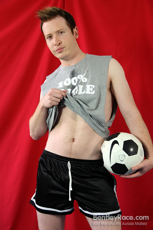 Josh Harris has to be one of the sexiest Aussie men I have shot on BentleyRace. We had intended to get together more since his last shoot but I have been distracted with the trip overseas and shooting new guys. But I’m sure he will be back for more action very soon. In the meantime I have just posted his latest shoot were he strips out of his footy gear and proud shows off his fat erection.